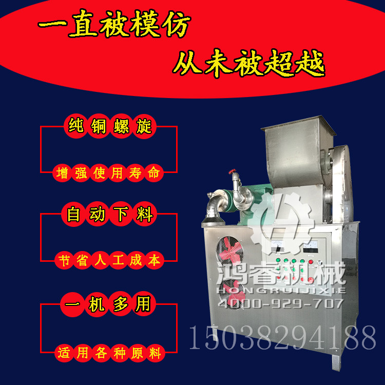 市場上的米粉已被大眾深深喜愛到可以說無法自拔,市場已供不應求。為了方便客戶操作,滿足重大客戶的需求,我 們廠家也是兢兢業業、不斷創新,現研究出新型多功能米粉機,供大家使用! 面等雜糧面條。還可以用浸泡2小時的大米,脫皮玉米糝,高粱米等為原料制作多種口味雜糧面條,滿足不同口味習慣的 消費人群。以及粉條、小麥冷面等,同時還可以用大米生產米線一機多用,實用性強。 系統,確保機器生面投入,熟面輸出。面條出機后即為熟品,又在機器下部增加了自動風干系統,使生產出的面條不會因 為溫度高濕度大而粘連在一起。因而生產的玉米面條更具有韌性、彈性、不粘牙、久煮不斷、久泡不散,不渾湯、不易斷 條、色澤金黃、清亮剔透、保留了玉米原有的自然風味。久食不厭。徹底解決了以往老設備由于結構設計缺陷導致的玉米 面條熟化程度不夠渾湯斷條的尷尬難題。 電熱自熟玉米面條機具有自動磨漿,擠壓、蒸煮熟化功能, 可一次性將玉米渣 (糝)等直接加工成精制面條。通過全新技術革新電熱自熟玉米面條機通過智能電熱裝置將水套里的水加熱,使玉米顆粒 在輸送加工過程中擠壓破碎成玉米漿,同時得到蒸煮而充分熟化,從原料到成品面條一次成型。制出的面條外觀光滑細膩, 顏色金黃剔透,柔軟可口,久煮不斷不糊,入口自覺濃郁的玉米芳香,是一種美味可口的純天然綠色無添加劑食品,更具 有極高的營養價值,這款新型自熟玉米面條機尤其是解決了以往各廠家干擠發啥好吃的玉米面條機! 求。趕緊拿起手里的電話咨詢我吧,財富熱線:15038294188